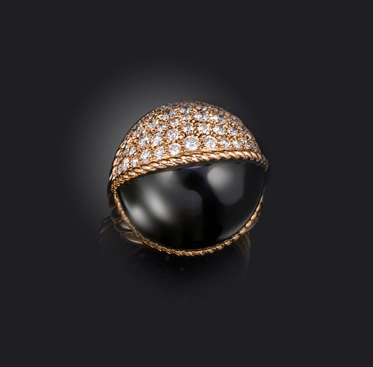 Contemporary Paris Nouvelle Vague Black Jade and Diamond 18ct Rose Gold Bombe Cocktail Ring