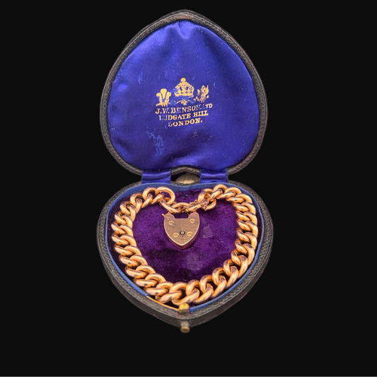 Antique Victorian 15ct Rose Gold Curb Bracelet with Original Padlock and Original Box