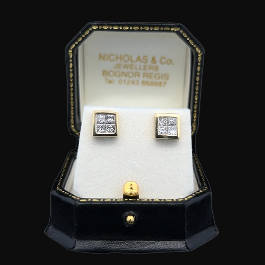 Vintage Princess Cut Diamond 18ct Gold Square Stud Earrings