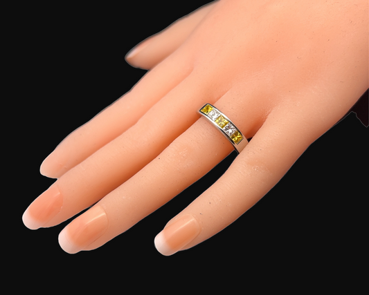 Vintage Yellow & White Princess Cut Diamond Platinum 5 Stone Ring