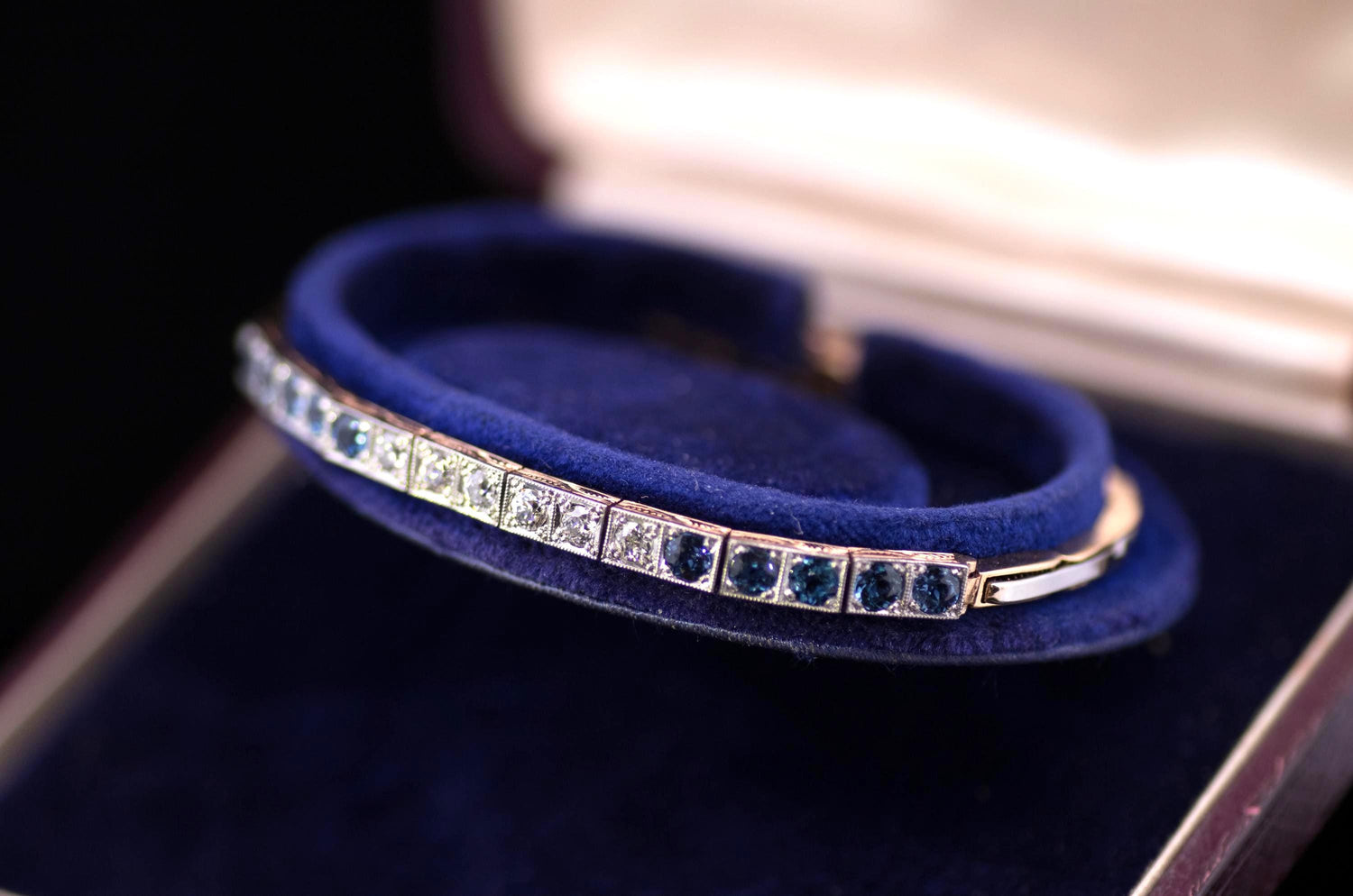 Vintage 'Art Deco' Sapphire and Diamond Two Tone 18ct Gold Cluster Ring