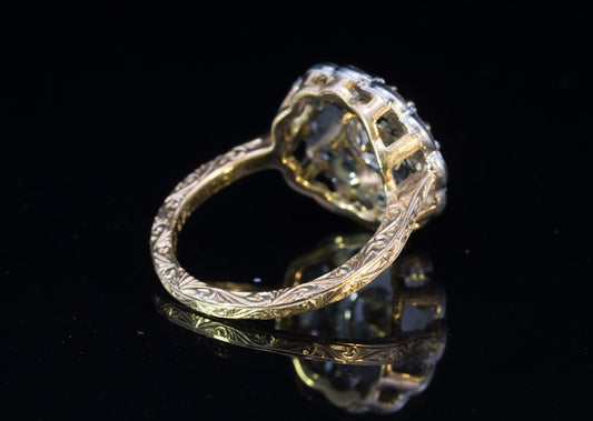 Antique Edwardian Turquoise and Transitional Cut Diamond Cluster Platinum Ring