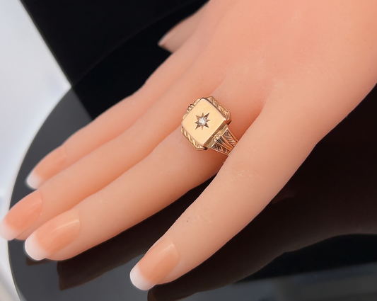 Vintage Victorian Style Diamond Set 9ct Gold Signet Ring