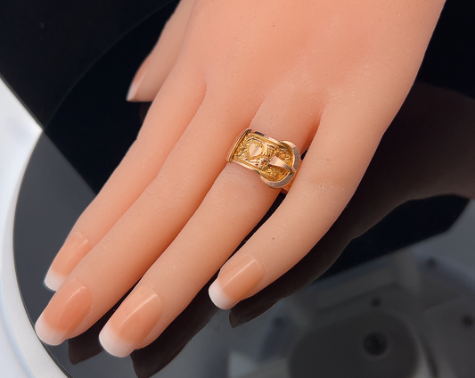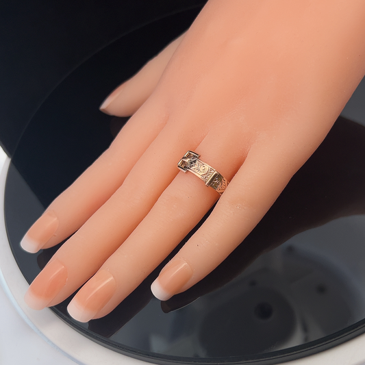 Antique Edwardian 9ct Gold Buckle Ring with Hearts Motif