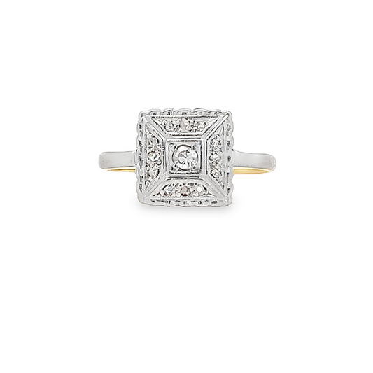Antique Art Deco Diamond 18ct Gold and Platinum 'Tablet' Ring