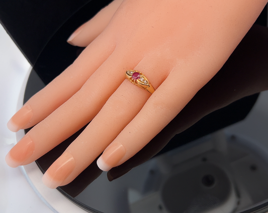 Antique Edwardian Ruby and Diamond 18ct Gold 5 Stone Ring